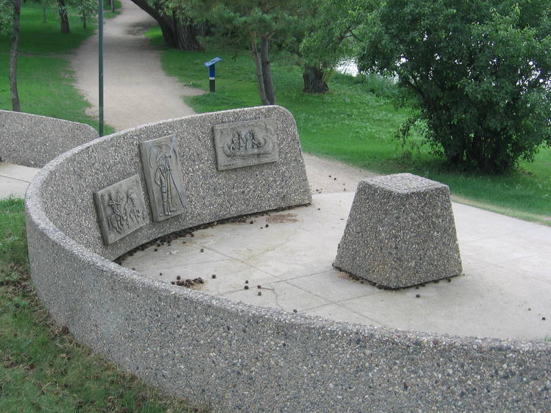 The three sandcastings on the lower wall of the monument also have historical significance. These three sandcastings were created In 1967 by Ernie Scheer, a long-time employee of Wascana Centre.